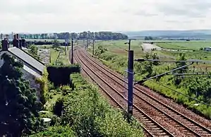 ![]() The site of the station, looking southeast towards Berwick-upon-Tweed, in 1997 | |