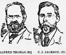Following the creation of the seat in 1885, there was a contest for the nomination. Following a meeting at Pontypridd, a number of candidates were proposed and invited to address public meetings. They included T. Marchant Williams, Lewis Morris and the Rev Aaron Davies.[1] Ultimately the two leading candidates proved to be Alfred Thomas, a prominent figure in the public life of Cardiff, where he had served as Mayor in 1881–2, and William Bowen Rowlands, a Pembrokeshire-born lawyer. After a contest lasting several months, Rowlands withdrew, ostensibly to prevent a split in the Liberal vote following the appearance of a Conservative candidate. However, Rowlands was regarded as far less radical than his opponent.[2] A leading Baptist, Thomas's victory owed much to his nonconformist connections, upon which this 'amiable and benevolent man' based much of his political outlook.[3]