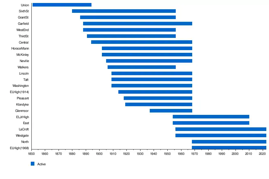 | East Liverpool High School | 1914 | 1968 | Currently Kent State University at East Liverpool |