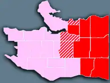 Politically, East Vancouver has often supported left-wing political candidates although demographic changes since the 1990s (e.g. significantly increasing family income levels) may be causing voting patterns to become more diverse. More specifically, the Northern portion of East Vancouver consistently votes for left-wing politicians by large margins, although the Southern areas tend to vote for centre to centre-right candidates.[27]