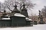 ![]() | Wooden church of St. Nicholas from Kožuchovce [5] | Permanent exhibit | East Carpathian wooden church and wooden belfry, originally from the village of Kožuchovce. | Námestie maratóncov 2 | Transferred to Košice in the 20th century. Located in the park on the grounds of the main building. |