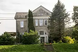 East Springfield Union School, also known as Springfield Central School, is a historic school building located at East Springfield in Otsego County, New York. It was built in two stages, starting in 1909. The original front section is a two-story, "T" plan, cross gabled Neoclassical style building executed in rusticated concrete block and set on a half raised basement. The rear portion is a single story utilitarian concrete block structure built in 1936. The main facade includes a protruding, full height central gable, its pediment featuring an Adamesque lunette window, fishscale slates, and a heavy wood cornice. The school closed in 1989.[2]