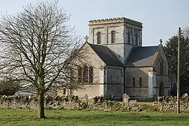 The parish church was rebuilt in 1841–42 near the site of its predecessor, from which the Norman stone font was retrieved.[5]