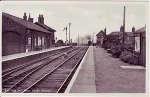 The station was opened on 2 October 1848 as East Ville and New Leake[2] after the nearby settlements of Eastville and Leake, and later renamed in 1852 to simply East Ville.[2] It was constructed by Peto and Betts civil engineering contractors who, in January 1848, had taken over the contract to construct the section of the East Lincolnshire Railway between Louth and Boston from John Waring and Sons.[3] This section was the last to be completed in September 1848 at an agreed cost of £123,000 (equivalent to £12,630,000 in 2020).[4][3] The station was situated in the middle of Eastville and was provided with two long sidings on the up side and a small goods yard, warehouse and long headshunt on the down side.[5] To the north of parallel platforms was a signal box and level crossing, with the main station building located on the down platform.[5] Goods traffic was always more important than passenger receipts and the goods yard handled large amounts of sugar beet in block loads, which were manually transferred to waiting wagons.[5] The 1922 timetable saw five up and four down services, and one Sunday service each way.[6] The station was closed to passengers on 11 September 1961[2] and to goods traffic on 15 June 1964.[7]