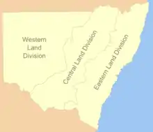 The Eastern Division of New South Wales is one of the three divisions of New South Wales along with the Central and Western divisions, established under the Crown Lands Act of 1884 for the purposes of land management. It is the most populated of the divisions, including Sydney and large coastal cities such as Newcastle and Wollongong. In 1907 it included the Armidale, Port Macquarie, Grafton, Maitland, Sydney, Goulburn, Lismore, Coffs Harbour and Orange land boards, as well as the eastern part of the Wagga Wagga, Dubbo and Tamworth land boards.[1]