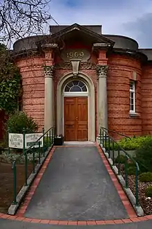 The Eastern Southland Gallery was built in 1909 as a public library for Gore, one of eighteen Carnegie libraries that were built in New Zealand with funds from American philanthropist Andrew Carnegie.[1] The building was extended in 2003 so that it could accommodate the John Money Collection.[2] The gallery is located at 14 Hokonui Drive, the northern end of Gore's main street, close to the town clocktower and public library.