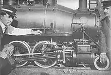 John J. Coit built the track of miniature railway and designed and probably even manufactured the steam locomotive. He had worked as a master machinist at the Johnson Machine Works, before he built and operated the profitable but short-lived Long Beach and Asbury Park Railway.[5] Due to being physically handicapped for two years when he designed the locomotive he focussed on a very user friendly design. He was friend ‚Shorty‘ Chase was a person of short stature and worked smartly dressed wearing a formal suit and a bowler hat as a conductor on all of Coit's railways.[6]