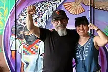After more than a decade as a community focal point, in 2017, Eastside Café community members learned of a commercial real estate developer looking to purchase the building, threatening the center's future.[6] El Sereno community members led a protest against gentrification to raise enough funds to buy out the space.[4] Owning the building would be an important step towards further actualizing the collective's mission to be a 100% autonomous organization.[4] Flores found out that the landlord had already sold the building without informing tenants.[4] After Flores' negotiating with him, the landlord gave the Eastside Café community 10 days to come up with funds to purchase the building.[4] The Eastside Café community managed to raise $180,000 in those 10 days, enough to make an initial offer.[4] Among those who donated were notable local musicians, Aloe Blacc and Maya Jupiter.