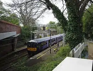 ![]() Wigan-bound Northern Electrics Class 319 EMU at Eccleston Park | |
