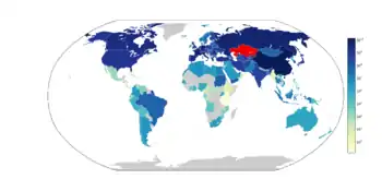 In 2017, the World Economic Forum compiled its Global Competitiveness Ranking, ranking Kazakhstan 57th out of 144 countries.[25] The ranking considers multiple macroeconomic and financial factors, such as market size, GDP, tax rates, infrastructure development, etc.[26] In 2012, the World Economic Forum listed corruption as the biggest problem in doing business in the country,[27] while the World Bank listed Kazakhstan as a corruption hotspot, on a par with Angola, Bolivia, Kenya, Libya and Pakistan.[28] Kazakhstan scored 31 points out of 100 in Transparency International's 2018 edition of the Corruption Perceptions Index, indicating high levels of corruption.[29]