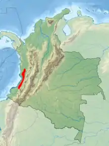Ectopoglossus lacrimosus is a species of frog in the family Dendrobatidae. It is endemic to western Colombia where it is known from the drainage of Atrato River, San Juan River, and GuanguĂ River.[2] It is a very rare frog found along streams in lowland and foothill forests and may be declining from threats such as deforestation for agriculture (including illegal crops), logging, human settlement and pollution from spraying of illegal crops. The only conservation measure known is that it occurs in Parque Nacional Natural Farallones de Cali.[1]
