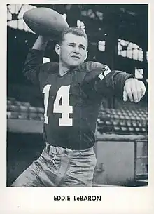 Edward Wayne LeBaron Jr. (January 7, 1930 – April 1, 2015) was a Korean War veteran and an American football quarterback in the National Football League (NFL) for the Washington Redskins and Dallas Cowboys. He played college football at the College of the Pacific. He also was an executive vice president of the Atlanta Falcons.