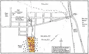 ".. a swamp extends along the western side of Pease Street, and ..[to the immediate east] .. is a swamp. These two swamps are connected by a water-course which passes ..[to the immediate south]. Thus this area has low-lying land on the east, south and west..."