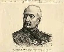 De Martimprey was Chief of the General Staff under Marshal Randon in the Army of Algeria.[3] In 1852 de Martimprey was appointed Brigadier General, and in 1855 Divisional General.[8] During the Crimean War he was appointed Major General of the Army of the East.[3] In this role he served in turn under marshals Saint-Arnaud, Canrobert and Pélissier.[9] He was then given command of the army division at Oran, Algeria.[8] He was next, as adjoint to Marshal Vaillant, in effect Major General of the Army of Italy in 1859.[9]