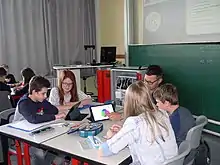Formal education occurs in a structured environment whose explicit purpose is teaching students. Usually, formal education takes place in a school environment with classrooms of multiple students learning together with a trained, certified teacher of the subject. Most school systems are designed around a set of values or ideals that govern all educational choices in that system. Such choices include curriculum, organizational models, design of the physical learning spaces (e.g. classrooms), student-teacher interactions, methods of assessment, class size, educational activities, and more.[19][20]