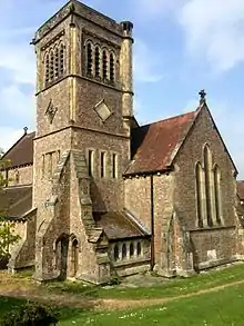 He practised from an office in Duke Street, London.[1][18] His only known work is St John the Evangelist Church, Hollington, constructed between 1865 and 1868 by engineer John Howell & Son[19] It is built with Bath Stone dressings; it has one aisle on the south side and a south-east tower.[20] There was a finial on the slimmer, round tower; removed in the 20th century. It was consecrated by Ashurst Gilbert, Bishop of Chichester, in April 1868.[21] This church is not listed.