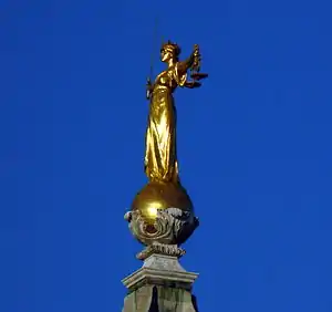 ![]() F. W. Pomeroy's 1906 statue of Lady Justice on the dome of the Old Bailey (Central Criminal Court) in London. | |