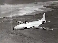 The success of these programs attracted a new type of research activity to the base in late 1946. The rocket-powered Bell X-1 was the first in a long series of experimental airplanes designed to prove or disprove aeronautical concepts—to probe the most challenging unknowns of flight and solve its mysteries.[6] Further evidence of things to come was experienced on 14 October 1947 when Captain. Charles "Chuck" Yeager flew the small bullet-shaped airplane to become the first human to exceed the speed of sound.[8]
