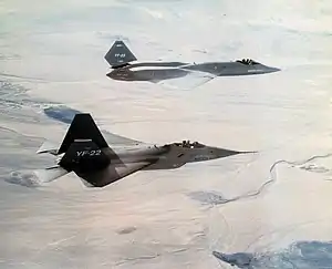 The end of the Cold War was marked by the arrival of the YF-22A and the YF-23A. The two prototype fighters were the first airplanes to blend stealth with agility and high-speed, supersonic cruise capability. The YF-22A was selected to become the Air Force's new advanced tactical fighter after a brief demonstration and validation risk reduction flight test program. Now named the Raptor, the F-22A continues to undergo test and evaluation at Edwards.[6]