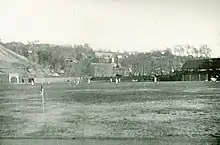 In fall of that year, Sweetland began football practice on September 4, 1900 with 10 returning players from the 1899 team.[30] His team finished the season with a 7–2–1 record including victories over Amherst and Oberlin.[31] One of his losses was to his former school, Cornell by a score of 6–0. Syracuse coming into the game did have several advantages that made their fans optimistic that the Orange could pull out a victory. First the game was being played early in the season, September, 29th. The Orangemen had been practicing for several weeks longer than Cornell. The second benefit was a large crowd of Syracuse rooters attended the game. Even with the game being played at Cornell's Percy Field, Syracuse rooters filled half the grand stand and part of the bleachers. The third advantage was that Cornell's captain, Raymond Starbuck, had been hurt earlier in practice and could not play. Sweetland's team started out strongly and had several opportunities to score. Early in the game, after stopping Cornell on their first possession, Syracuse drove the ball into scoring position at the Cornell's 15 yard line but could not score. Later, just before half time, Cornell returned a fumble to the Syracuse's seven yard line but Sweetland's defence stopped them from scoring and took over on downs. Then in Syracuse's next possession, Carr, Syracuse's half-back, went through a hole in the Cornell line and ran seventy yards before Cornell's halfback A. B. Morrison caught him to prevent a touchdown. The game remained tied until about two minutes to play when Cornell's Morrison ran 25 yards for a touchdown. After the game Cornell accused Coach Sweetland's team of rough and dirty play.[32]