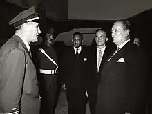 This strategic situation however changed, firstly in Yugoslavia in 1948 after the Tito–Stalin split which led to Informbiro period.[1] This initially had a negative effect on already negligible relations as the Yugoslav representative in Cairo defected to the pro-Soviet side end emigrated to Moscow with significant part of the archive.[1] Majority of Egyptian communists strongly supported Soviet Union's position and canceled almost all of their links to Yugoslavia.[4] Yugoslavia was nevertheless able to continue its cooperation with legal social-democrats and socialists in Egypt.[4] Relations between the two countries were not initially improved due to Yugoslav support to Israel which resulted in ban on Yugoslav ships in Egyptian ports.[1] In late 1949 and 1950 Hassan Sobhi, leader of the Socialist Party of Egypt and Al-Musawar's author, visited Yugoslavia and upon his return to Egypt organized a lecture on Yugoslav socialism for 200 students.[4] In 1950 Egyptian Government officially prevented any distribution of Yugoslav media in the country.[4] Nijaz Dizdarević, diplomat from the PR Bosnia and Herzegovina and a former Yugoslav Partisan, was sent to Egypt in 1951 to organize and systematize Yugoslav efforts in cooperation with socialists and social-democrats.[4] Situation however quickly changed after the Egyptian revolution of 1952.[1]