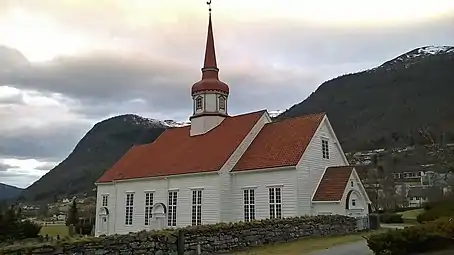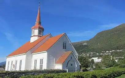 Eid Church (Norwegian: Eid kyrkje) is a parish church of the Church of Norway in Stad Municipality in Vestland county, Norway. It is located in the village of Nordfjordeid. It is the church for the Eid parish which is part of the Nordfjord prosti (deanery) in the Diocese of Bjørgvin. The white, wooden church was built in a long church design in 1849 by the builder Claus Wiese using plans from the architect Hans Linstow. The church seats about 550 people. This is the fifth church building to sit at Nordfjordeid.[1][2]