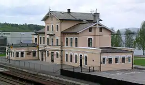 Eidsvoll Station (Norwegian: Eidsvoll stasjon) was a railway station at Eidsvoll in Akershus, Norway. It was located on the Trunk Line (Hovedbanen). [1]