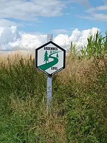 The Eifel-Ardennes Green Route or Eifel-Ardennes Green Road (German: Grüne Straße Eifel-Ardennen, French: Route Verte Ardennes-Eifel) is a cross-border, tourist route, about 500 kilometres long, which links the Ardennes to the Eifel. It runs from France via Belgium and Luxembourg to Germany mainly on quiet by-ways.
