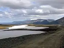 Eiríksjökull (Icelandic for "Eirík's glacier", [ˈeiːriksˌjœːkʏtl̥]) is a glacier north-west of Langjökull in Iceland, with an area of 22 km2 (8.5 sq mi) reaching a height of 1,675 m (5,495 ft),[1] making it the largest table mountain in Iceland.[2] Rising over 1,000 m (3,300 ft) above its surrounding, the lowest 350 m (1,150 ft) of a hyaloclastite (móberg) tuya formed presumably by a single subglacial volcanic activity is capped by a 750 m (2,460 ft) thick lava shield.[2][3] It is currently dormant or extinct in terms of volcanic activity.[4]