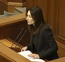 Ekaterine "Eka" Zguladze (Ekaterina Zguladze-Glucksmann; Georgian: ეკატერინე ზღულაძე, Ukrainian: Екатеріна Згуладзе-Глуксманн; born 18 June 1978) is a Georgian and Ukrainian government official. She served as First Deputy Minister of Internal Affairs of Ukraine since 17 December 2014 till 11 May 2016.[3] She had served as Georgia's First Deputy Minister of Internal Affairs from 2006 to 2012 and Acting Minister of Internal Affairs in 2012.