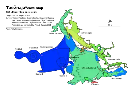 - Curihin, Evgenij (1 December 2020). "Таежная" [Taëžnaja (cave)]. speleoatlas.ru - Caving atlas of Russia and the Commonwealth of Independent States (CIS) (in Russian). Русское географическое общество / Russian Geographic Society. Retrieved 21 July 2021.