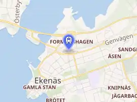 The Ekenäs railway station (Swedish: Ekenäs järnvägsstation, Finnish: Tammisaaren rautatieasema) is located in Raseborg, Finland, in the urban area and city seat of Ekenäs. It is located along the Karis–Hanko railway,[3] and its neighboring stations are Skogby in the west and Dragsvik in the east.[4]