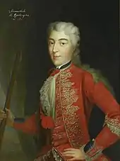 The hetmaness was "a lady of great wisdom, reason and shrewdness" and she was deployed by her husband on diplomatic missions, duties and obligations that he could not cope with.[11] Otwinowski called her "a great owner of such shrewdness that she had meetings with the whole of Europe".[11] Others called her "a great ruler and the First Lady of the Republic"[12] and Augustus II had her portrait amid the effigies of distinguished women.[13] After John III Sobieski's death she supported the French candidature of François Louis, Prince of Conti for the Polish throne and became a leader of his party.[14] When she became disillusioned with his candidature, she affiliated with Augustus II.[14] After Queen Marie Casimire's departure to Rome, she administered her widow dowry in Warsaw. Between 1701 and 1703, due to incitement of the French diplomacy, she was involved in the anti-Habsburg insurrection in Hungary, which she financially and politically supported.[12] The rebellion's leader Francis II Rákóczi, Prince of Transylvania, became her lover.[14] In the Sieniawskis' estate in Berezhany, Rákóczi issued a proclamation To all Hungarians considered as the beginning of the uprising.[15] Their discreet romance flourished in the turbulent years of war. He wrote a madrigal in French dedicated to the hetmaness and his love letters are interesting examples of epistolography.[16] When in 1704, Jakub and Konstanty Sobieskis were kidnapped and imprisoned in Saxony, Aleksander resigned from the rivalry for the crown, afraid of revenge from his former lover (at that time Wettin partisan).[17]