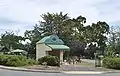 ![]() The main street of Eldorado. A Soldiers Memorial bus shelter is in the foreground while the General store and McEvoy Tavern ("The smallest pub in Victoria") can seen to the left. | |