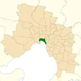 ![]() Location of Albert Park (dark green) in Greater Melbourne | |