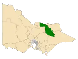 It largely covers areas from the abolished district of Murray Valley, centering on the city of Wangaratta. It includes the towns of Yarrawonga, Cobram, and other towns in the local government areas of Moira, Wangaratta, and Alpine.[2]