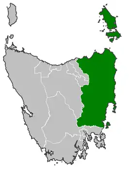- "Legislative Council Divisional Enrolment as at 31 January 2015" (PDF) (Map). Legislative Council Enrolment. Tasmanian Electoral Commission. 2 February 2015. Archived from the original (PDF) on 24 September 2015. Retrieved 12 August 2015.