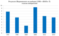 Vladimir Zhirinovsky's results in the presidential elections from 1991 to 2018