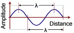 The first use of the term "electrical length" assumes a sine wave of some frequency, or at least a narrowband waveform centered around some frequency f. The sine wave will repeat with a period of T = 1⁄f. The frequency f will correspond to a particular wavelength λ along a particular conductor. For conductors (such as bare wire or air-filled coax) which transmit signals at the speed of light c, the wavelength is given by λ = c⁄f. A distance L along that conductor corresponds to N wavelengths where N = L⁄λ.
