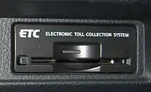 Electronic toll collection (ETC) is a wireless system to automatically collect the usage fee or toll charged to vehicles using toll roads, HOV lanes, toll bridges, and toll tunnels.[1] It is a faster alternative which is replacing toll booths, where vehicles must stop and the driver manually pays the toll with cash or a card. In most systems, vehicles using the system are equipped with an automated radio transponder device. When the vehicle passes a roadside toll reader device, a radio signal from the reader triggers the transponder, which transmits back an identifying number which registers the vehicle's use of the road, and an electronic payment system charges the user the toll. A major advantage is the driver does not have to stop, reducing traffic delays. Electronic tolling is cheaper than a staffed toll booth, reducing transaction costs for government or private road owners. The ease of varying the amount of the toll makes it easy to implement road congestion pricing, including for high-occupancy lanes, toll lanes that bypass congestion, and city-wide congestion charges. The payment system usually requires users to sign up in advance and load money into a declining-balance account, which is debited each time they pass a toll point.