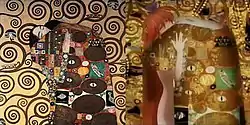 The opening and ending sequences feature artistic drawings of the principal characters. These characters are drawn in a style based on Gustav Klimt's paintings, including The Kiss, Adele Bloch-Bauer I, and others with similar imitating poses, colors, and patterns.[14] In promotional art as well as in the series itself, characters make use of a famous El Greco hand symbol of outstretched fingers with the middle and ring fingers connected. The song Elfenlied ("Elf Song") appears in the manga[15] and is credited to the composer Hugo Wolf. A poem by Eduard Mörike is the basis for Wolf's version. It is taught to Nyu by the manga-only protagonist Nozomi.