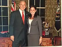 After graduating from Harvard, she joined the Bush administration,[12] working as staff for the Domestic Policy Council.[13] Stefanik later worked in the office of the White House Chief of Staff Joshua Bolten.[13] In 2009, she founded the blog American Maggie, named after British Prime Minister Margaret Thatcher, providing a platform for "conservative and Republican women" to promote their views on politics and policy.[10]