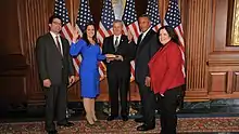 In January 2015, Stefanik was appointed to the House Armed Services Committee.[35] The freshman representatives of the 114th Congress elected her to serve as the Freshman Representative to the Policy Committee.[36] In February 2015, she was appointed vice chair of the House Armed Services Committee's Subcommittee on Readiness.[37] She was invited to join the Senior Advisory Committee at the Harvard Institute of Politics shortly after her election.[10] She was removed from the committee in 2021 following her objection to Pennsylvania's electoral votes after the storming of the U.S. Capitol.[38][39][40][41]