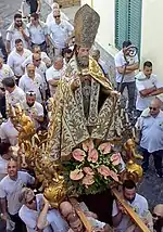 In 1958 archbishop Demetrio Moscato wanted to carry out a canonical exhhumation and reconnaissance of the mortal remains of the saints buried in the crypt of the Salerno cathedral, properly under the "Altar of the Holy Confessors".[13] Among the other relics were also found those of the three saints: Elpidius Bishop of Atella, Cionius presbyter and Elpicius deacon,[14] placed there by archbishop Alfano I in March 1081, as is clearly stated in a marble inscription.[15][16][17]