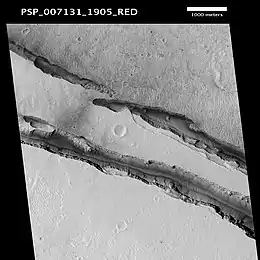 The Cerberus Fossae, as seen by HiRISE (scale bar is 1.0 km) The Cerberus Fossae, as seen by HiRISE (scale bar is 1.0 km)