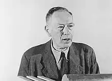 Utitz and his wife were deported to Theresienstadt Ghetto on 30 July 1942.[5][20] There, he became head of the Ghetto Central Library, which opened in November 1942.[21] The library started with about 4,000 books, most of them theological or scholarly works in Hebrew or German.[22] Within a year, the collection had grown to over 48,000 volumes. When the reading room opened in June 1943, use was restricted to readers who could pay a deposit and pass an interview with Utitz or another librarian.[23] Utitz, who was one of the "prominent" prisoners given special treatment, was involved in cultural activities in Theresienstadt, for example as judge in a poetry contest in 1944.[24][25] He also gave lectures, one of which was filmed for the 1944 propaganda film Theresienstadt.[26] The manuscript of Viktor Ullmann's opera Der Kaiser von Atlantis was saved by Utitz when Ullman was deported to Auschwitz in October 1944 and later given to H. G. Adler.[27] Utitz and his assistant, Käthe Starke-Goldschmidt, who preserved the Theresienstadt Papers,[28] were the only library staff to survive until the liberation of Theresienstadt in May 1945, and spent three more months in the camp to oversee the disbanding of the library, with 100,000 books returned to Prague.[29] Utitz later wrote a book about the psychology of life in Theresienstadt, which appeared in a Czech edition in 1947 and in German translation in 1948.[30]
