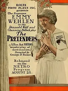 Not long after To-Night's the Night ended its run, Wehlen abandoned the stage for film,[3] only to return briefly in late 1918 to perform with the traveling Little Theatre in New York to benefit the Stage Women's War Relief Organization.[11] Wehlen first played Ruth King in the 1915 film When a Woman Loves and would go on to perform leading roles in nearly twenty movies over the next five years. During this time she was often billed as Emily Wehlen.[12] Her last film was Lifting Shadows, released in 1920, in which she played the lead character, Vania.[13] Only three Wehlen films are known to have survived, and none of these have been re-released in any format to the public.
