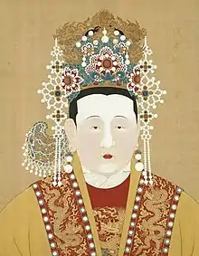 A regency was formed consisting of Zhang Fu (Duke of Yingguo), as well as three grand secretaries: Yang Shiqi, Yang Rong and Yang Pu, with Empress Zhang as the head of the regency council and regent.[6] It was she who appointed the five ministers of the minor government.[10] She was never formally given the title of regent: when she was asked to, she responded that there was no ancestral precedence for such a thing in the dynasty.[6] Though she refused the title, however, she still acted as regent, and held council with her ministers, listened to their views, and reserved the final say to her.[6]