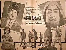 En Magan (transl. My Son) is a 1974 Indian Tamil language film directed by C. V. Rajendran.[1] The film stars Sivaji Ganesan and Manjula, with K. Balaji, Major Sundarrajan, R. S. Manohar, V. S. Raghavan, V. K. Ramasamy and Manorama in supporting roles. The film had musical score by M. S. Viswanathan[2] It is a remake of 1972 movie Be-Imaan.[3] The film became a commercial success, running for over 100 days in theatres.[4]