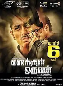Enakkul Oruvan (transl. A Man Within Me) is a 2015 Tamil-language drama film directed by debutant Prasad Ramar and produced by C. V. Kumar. A remake of the 2013 Kannada film Lucia directed by Pawan Kumar, the film stars Siddharth and Deepa Sannidhi, with Santhosh Narayanan composing the film's music. It is the 25th film of Siddharth.[1] The film was released on 6 March 2015. Telugu version of the film is titled as Naalo Okkadu.[2]